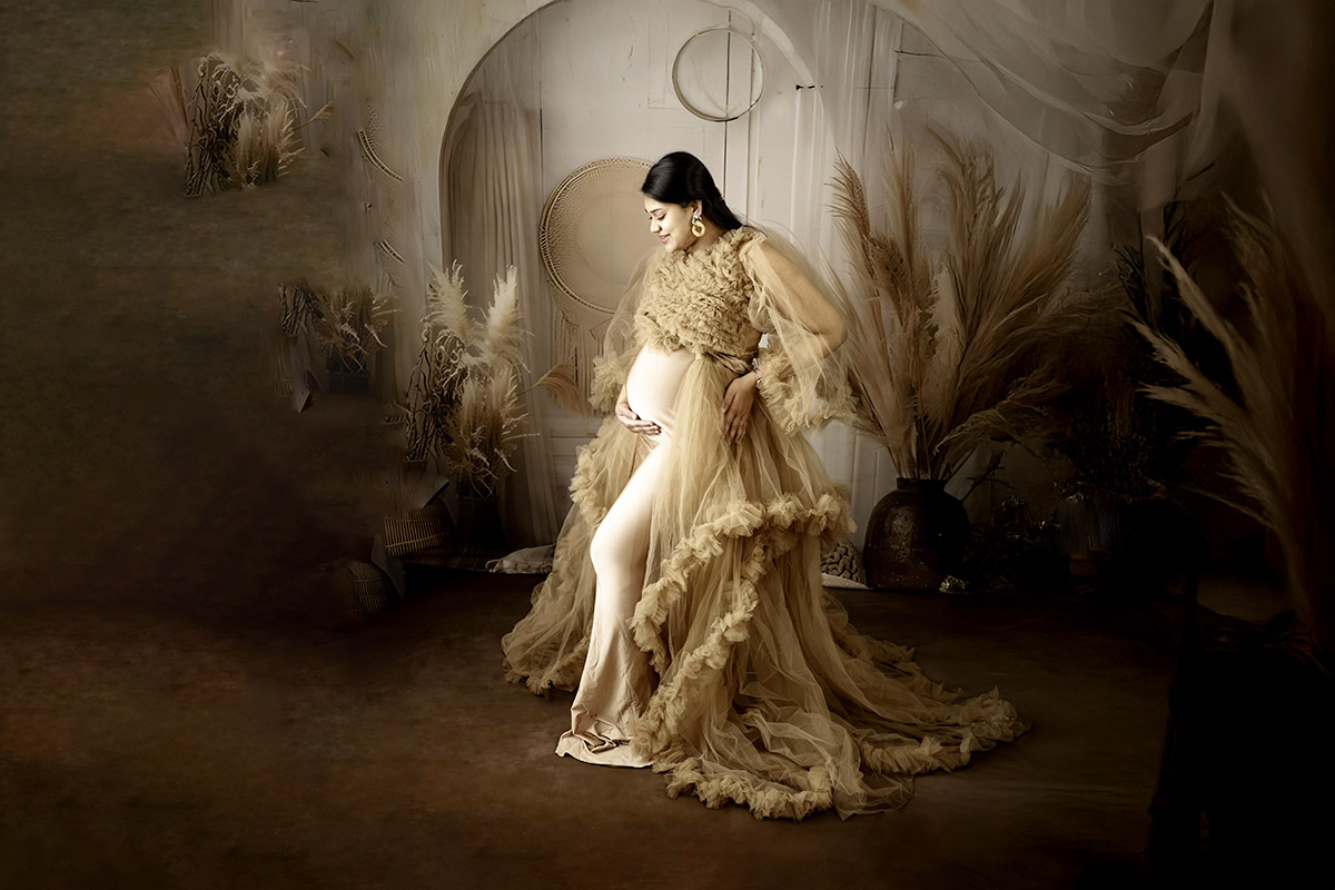 We generally recommend indoor maternity photoshoots, as they ensure complete comfort and privacy. Expecting mothers can take regular breaks, change outfits with ease, and relax whenever needed – creating a calm, enjoyable, and stress-free experience. With artistic vision, premium props, and professional lighting,